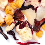Pineapple Mojito is incredibly refreshing and unique; it’s a fruit tea blend of pineapple, lemon, and peppermint. Caffeine-free. Steeping: 5 minutes at 212* Ingredients: Pineapple bits (pineapple, sugar, citric acid), apple bits (apples, tartaric acid), lemon granulate (glucose syrup, lemon juice concentrate, sugared apricots, modified starch, thickener: sodium alginate, natural lemon flavour), lemon, red currants, […] | ||