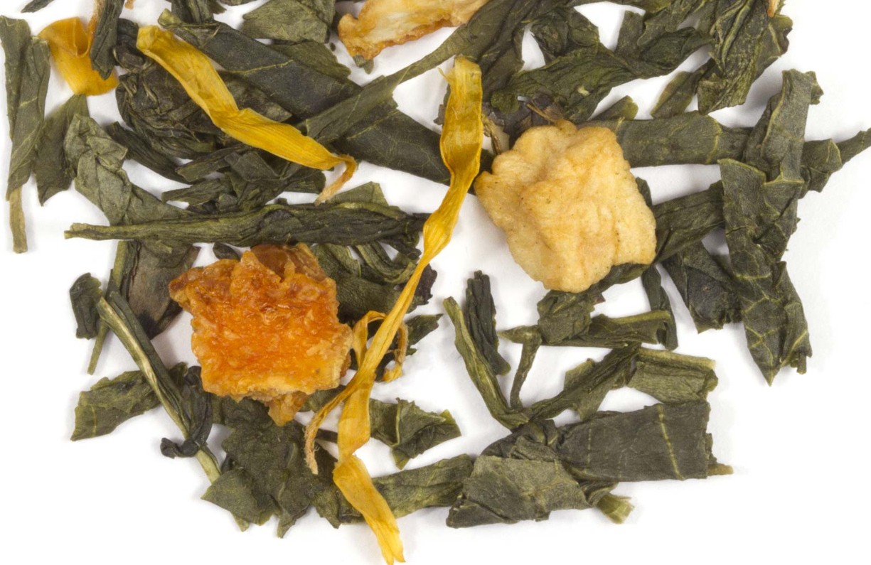 Ingredients: Green tea, Apple Pieces, Orange, Natural Lemon flavor, marigold flowers, natural vanilla flavor, and natural creme flavor.