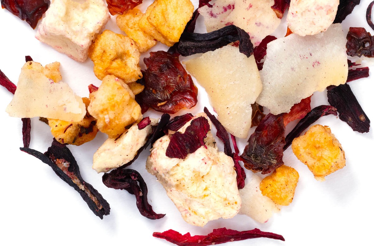 Ingredients: Hibiscus, Apple Pieces, Rose Hips, Coconut, Natural Coconut flavor, Pineapple pieces and natural pineapple flavor